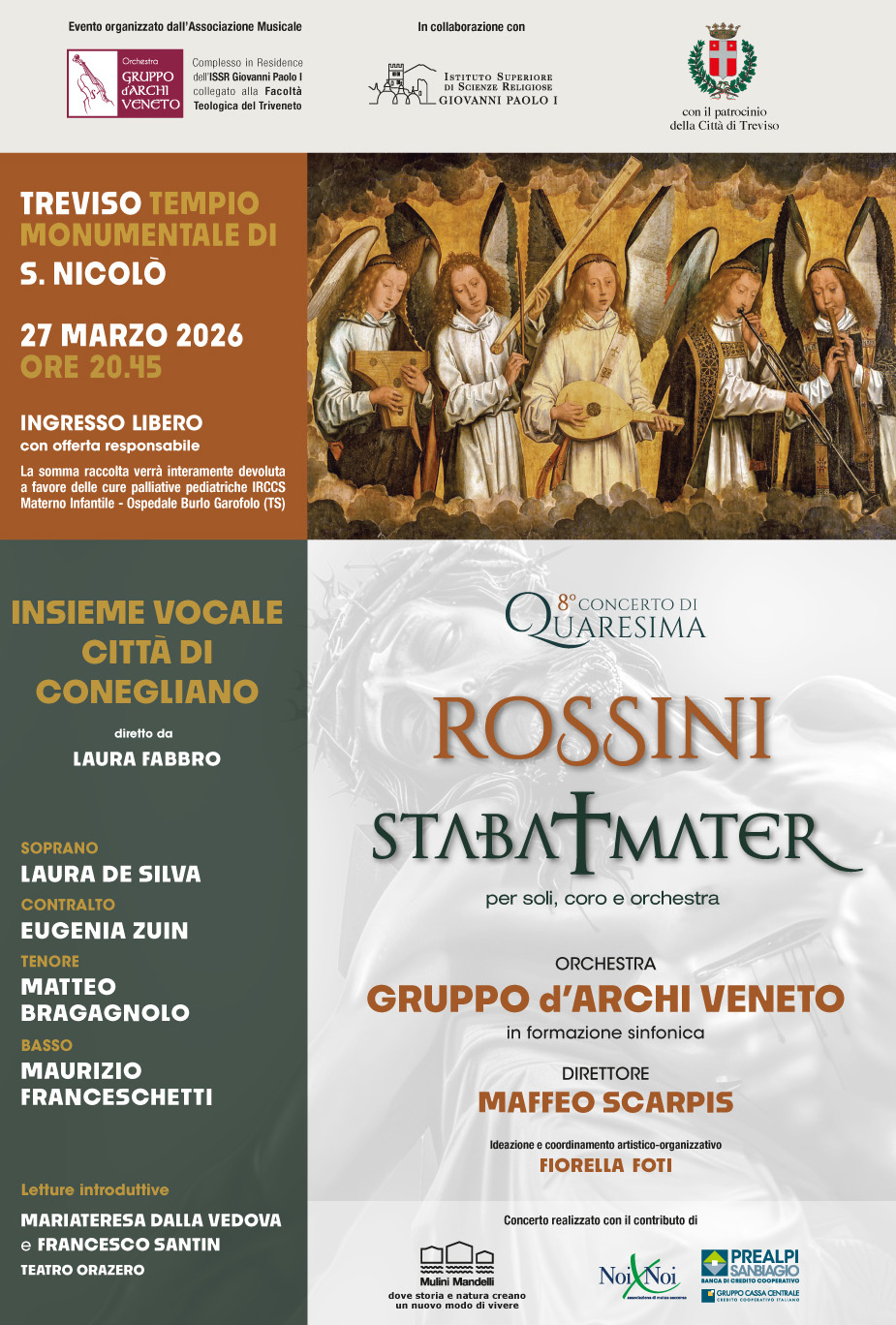 Venerdì 27 marzo 2026, alle ore 20.45, presso il Tempio Monumentale di San Nicolò a Treviso, si svolgerà l’8° Concerto di Quaresima, appuntamento ormai consolidato e di grande valore artistico e spirituale.