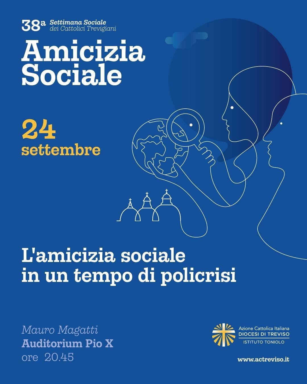 Il relatore sarà Mauro Magatti, professore della Cattolica del Sacro Cuore ed editorialista del Corriere della sera e di Avvenire, che parlerà di amicizia sociale in un tempo di policrisi.